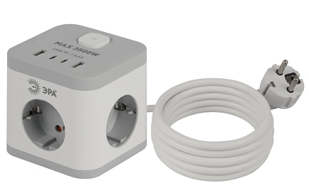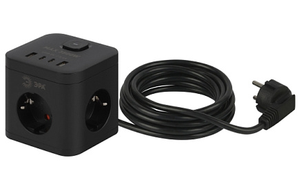 Удлинитель электрический ЭРА CUBE-3es-1,5m-4USB-B куб с заземлением с выключателем 3 розетки+4xUSBA+